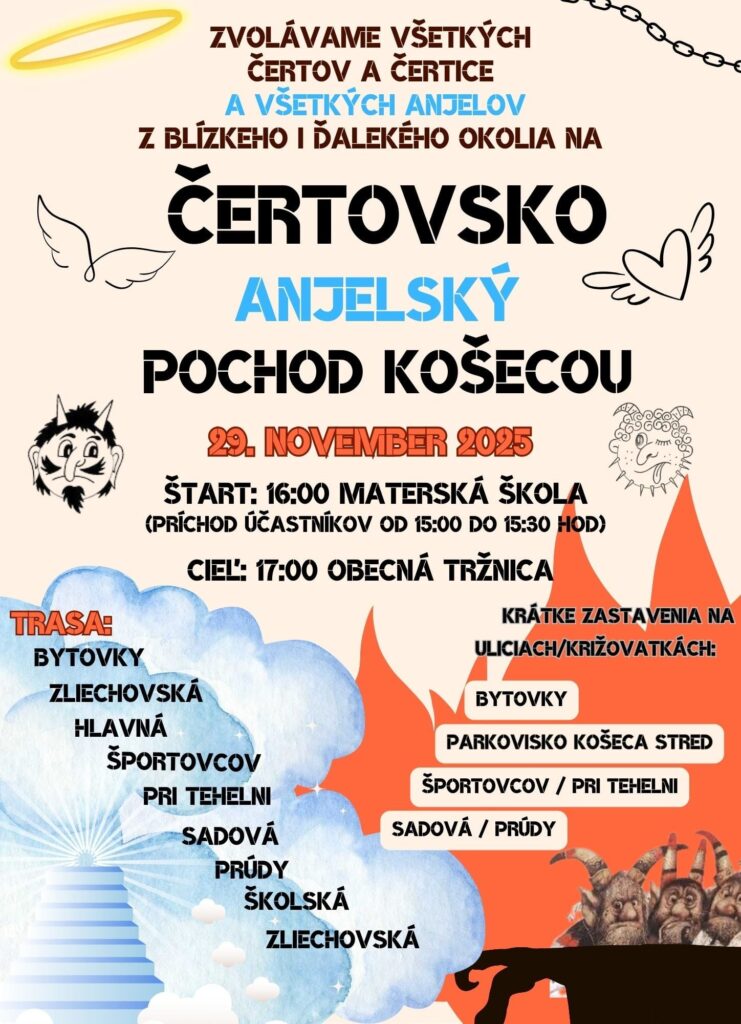 ÚvodKde, kedy, čoKošeca, 29.11.2025, Čertovsko-anjelský pochod Kde, kedy, čo Košeca, 29.11.2025, Čertovsko-anjelský pochod Od Robert Zvonár 28. novembra 2025 0 134 FacebookXPinterestWhatsApp Tagy#Čertovsko-anjelský pochod#Košeca FacebookXPinterestWhatsApp Predchádzajúci článokKošeca, 29. 30.11.2025, Adventný amfiteáter. 1. adventný víkendĎalší článokPúchov, 6.12.2025, Mikulášsky jarmok SÚVISIACE ČLÁNKY Kde, kedy, čo Trenčín, 2.5.2026, Deň hasičov Kde, kedy, čo Ladce, 2.5.2026, Ladecký kotlík Kde, kedy, čo Dubnica nad Váhom, 2.5.2026, Pálenie Ďura