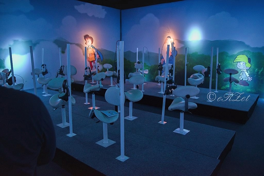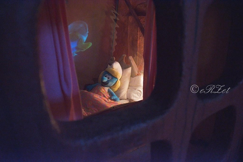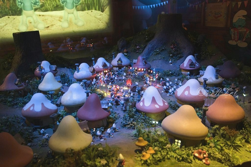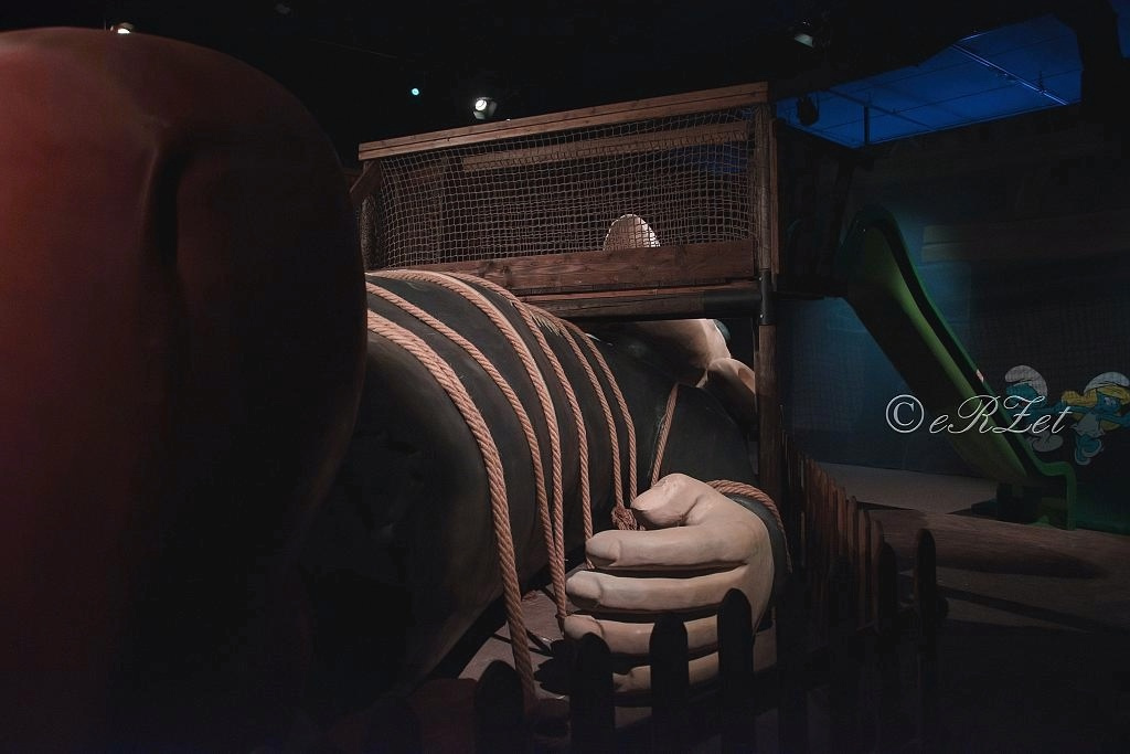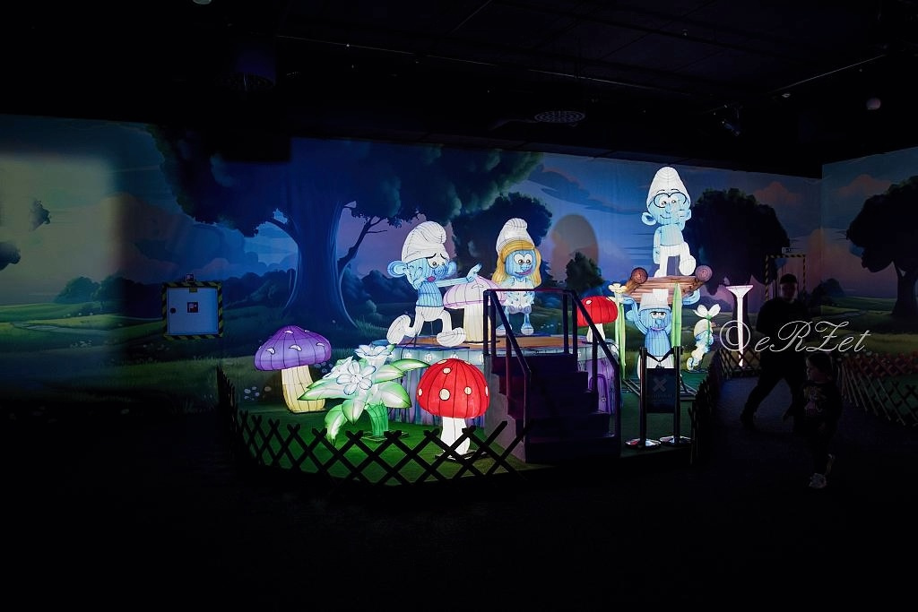 Som vo virtuálnej realite na druhom poschodí a video ma voviedlo do života v Šmolkolese a previedlo celou expozíciou a ja som sa začal prechádzať atrakciami s pozvánkou od Šmolka. Dostal som plánik tohto mini magického sveta. Prešiel som sa lesom. Počas prechádzky kúzelným lesom som sa postupne zmenšoval tak, aby som bol veľký ako Šmolkovia, teda 3 jablká na sebe. Cestou som stretol malých Šmolkov, ktorí ma pozvali ďalej. Kúzelná dedinka so Šmolkovskými hríbikovými domčekmi a aj malými Šmolkami, záhradkou, studňou, sušiakom na prádlo i so športovým náradím – činkami. Pozrel som sa do domčeka Šmolinky, ktorá ma pozvala na veľkú Šmolkoparty. Najväčší domček v dedinke je plný kúziel. V strede sa na ohnisku varí čarovný lekvár. Teraz ma zasa tatko Šmolko pozval, aby som dokončil premenu na Šmolka, tak sa aj stalo. Aby to nebolo také jednoduché, na interaktívnom pni stromu som vyplnil jednoduchý kvíz. Na druhom pni som sa naučil hovoriť šmolkovským jazykom. Videomapping simuluje prechod vodopádom do svetielkujúceho magického lesa, v ktorom je Gargamelov hrad. Preskočil som po kameňoch potok a vydal sa po lavičke na dobrodružnú prechádzku okolo Gargamelovho hradu. Malý Šmolko ma varoval, na čo si mám dávať pozor! Na ceste mi prekáža rieka, ktorú som prekonal, už ani neviem ako. Joj, nie chytil som sa do Gargamelovej pasce, veľkej klietky. Ale nemám strach, Šmolkovia mi prišli pomôcť a zlého Gargamela premohli, zviazali a zhodili na zem. Obrovský Gargamel leží porazený na zemi a ja oslavujem, vyliezol som na lavičku nad neho a šmykol som sa ponad jeho otvorenú papuľu dolu. Nebál som sa keď zo zúfalstva škriekal, hýbal nohami a rukami. Pozor na kocúra, číha vo svojej skrýši: Stlačil som tlačidlo, joj Azrael skočil priamo predo mňa. Aj  Gargamelovu knihu kúziel som si prelistoval, ktorá sa mi menila priamo pred očami. Pomóc, zachránime Šmolkovský les i celú planétu, znič obrovský Gargamelov stroj! Pohol som pákami i ozubeným kolesom, ale vyliezť hore na stroj a zošmyknúť sa po tobogáne dole. Bál som pozrieť oko celý stroj vybuchne. Na záver som v 5D virtuálnej realite zažil nádherný let na chrbte veľkého bociana. Ani dravec – krkavec ma nezhodil. Šmolkovia už na teba čakajú vo svojej Šmolkovskej dedinke a pozývajú ťa na oslavu. Virtuálne som sa takto prešiel Šmolkovským svetom a tak sa šťastne dostal do cieľa.