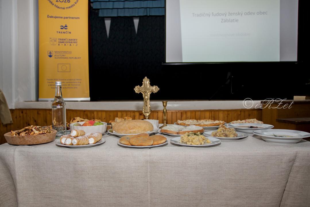 Prišiel čas ochutnávky jedál podľa starých receptov zo Záblatia. Na centrálnom stole pri krížiku, modlitebnej knižke, neodmysliteľnej pálenke, bol chlieb, cibuľový chlieb, sladké či slané koláče, šamrolách. Na inom mieste si hostia na ochutnávke pochucovali na koláčoch na slano, aj sladkom, na kapustníkoch, medovníkoch, obložených chlebíkoch, rôznych druhoch polievok.