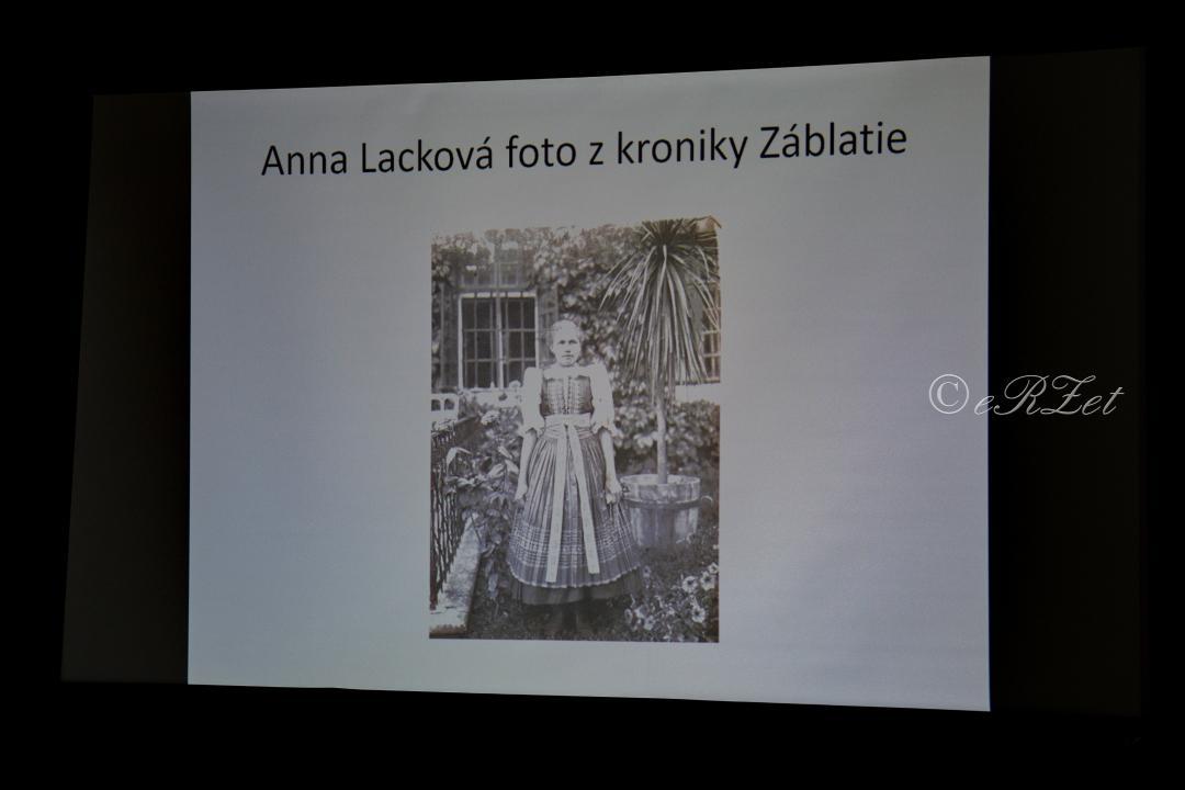 Jozef Ďuráči zo zanietením jemu vlastným predstavil Záblastské kroje. S vtipom ako je to u neho zvykom popisoval jednotlivé časti kroja, prakticky obliekal dievky a mládencov tak ako ich Pán Boh stvoril do kroja. Od spodníka u žien a gatí u mužov. Popisoval oblečenie v rôznych obdobiach roka, oblečenie na rôzne činnosti, hlavne na poliach, ako sa išlo do mesta, na zábavy. Pohovoril ako sa museli mládenci pripraviť na zábavy kde ich ako „cudzárov“ mohlo čo to postihnúť, aby boli na to pripravený. Do diskusie sa pripájali aj návštevníci v Kultúrnom dome. Svoju prednáškodiskusiu obohatil okrem obrázkov na premietacom plátne aj reálnymi ukážkami časti krojov na stole. No nielen kroje boli vidieť, ale aj starý album, modlitebná knižka, dobové fotografie. Pod premietacím plátnom bol naaranžovaný akoby starodávny bytový stôl. Na plátne sa však objavovali aj historické fotky Záblaťovanov v krojoch čo vyvolalo značnú diskusiu, pretože veľa hostí malo k ním čo povedať, hlavne kto je kto.