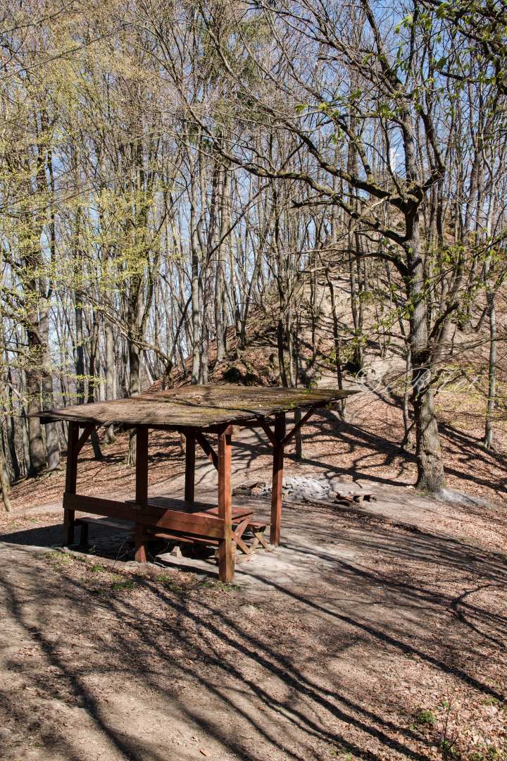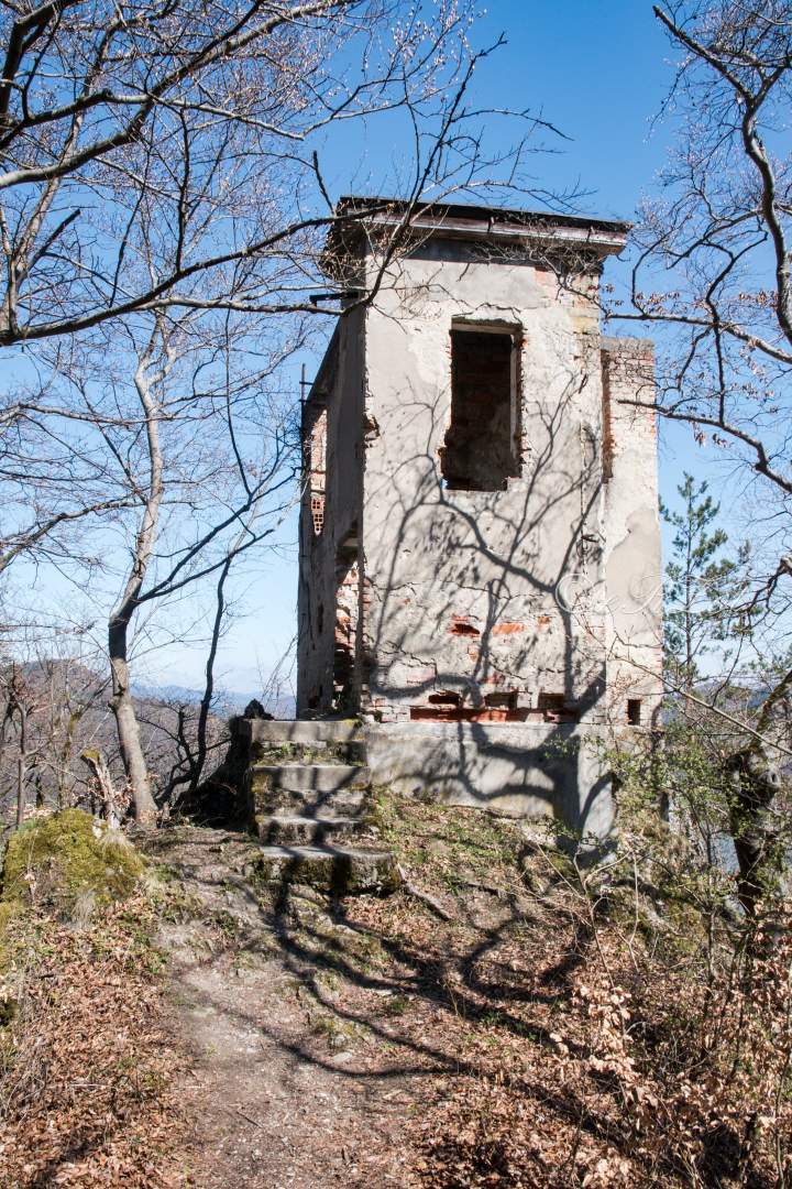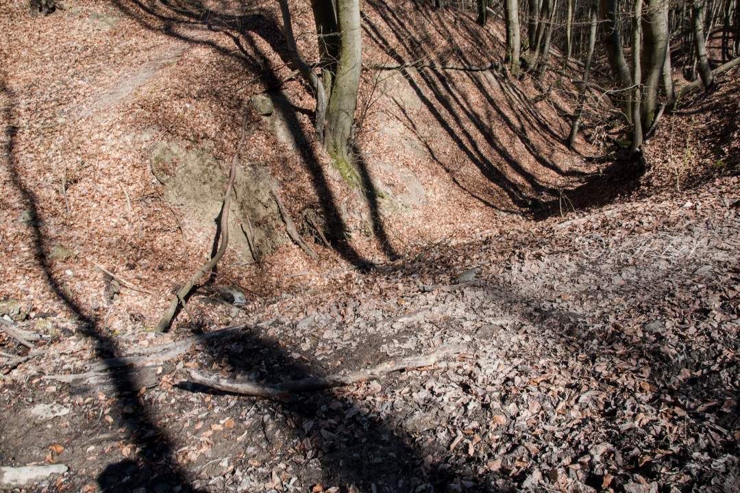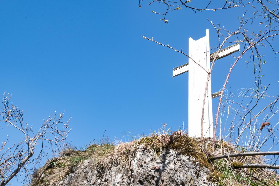 len tak po ceste jedol a pokračoval pri Nosickej priehrade popri pri ceste povedľa oporného cestného múru. Po chvíli som prešiel podľa navigácie na lesnú cestu a pokračoval lesom, lúkou až k altánku pod krížom. Tam kde bola Hviezda je dnes kríž, ale kríž je zvláštny, postavený dole hlavou: vrchné rameno je väčšie ako rameno dolné. Či je to náhoda, či naschvál tak ako pri vstupe do koncentračného tábora Osvienčim keď je písmeno „B“ vo vete „ARBEIT MACHT FREI“ napísané opačne.