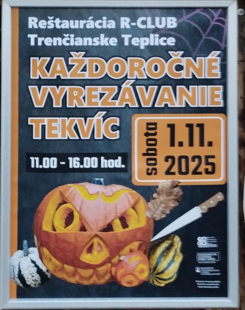 ÚvodKde, kedy, čoTrenčianske Teplice, 1.11.2025, Každoročné vyrezávanie tekvíc Kde, kedy, čo Trenčianske Teplice, 1.11.2025, Každoročné vyrezávanie tekvíc Od Robert Zvonár 31. októbra 2025 0 136 FacebookXPinterestWhatsApp Tagy#Každoročné vyrezávanie tekvíc Trenčianske Teplice#Reštaurácia R-Club Trenčianske Teplice#Trenčianske Teplice FacebookXPinterestWhatsApp Predchádzajúci článokSrbská Kovačica na skokĎalší článokPovažská Teplá, 9.11.2025, Zamykanie Manínskej úžiny SÚVISIACE ČLÁNKY Kde, kedy, čo Trenčianske Teplice, 6.5 a 3.6.2026, Koncerty SZUŠ Trenčianske Teplice 2026 Kde, kedy, čo Dubnica nad Váhom, 6.5.2026, Detský raj s rodičmi Kde, kedy, čo Dubnica nad Váhom, 2.5.2026, Pálenie Ďura