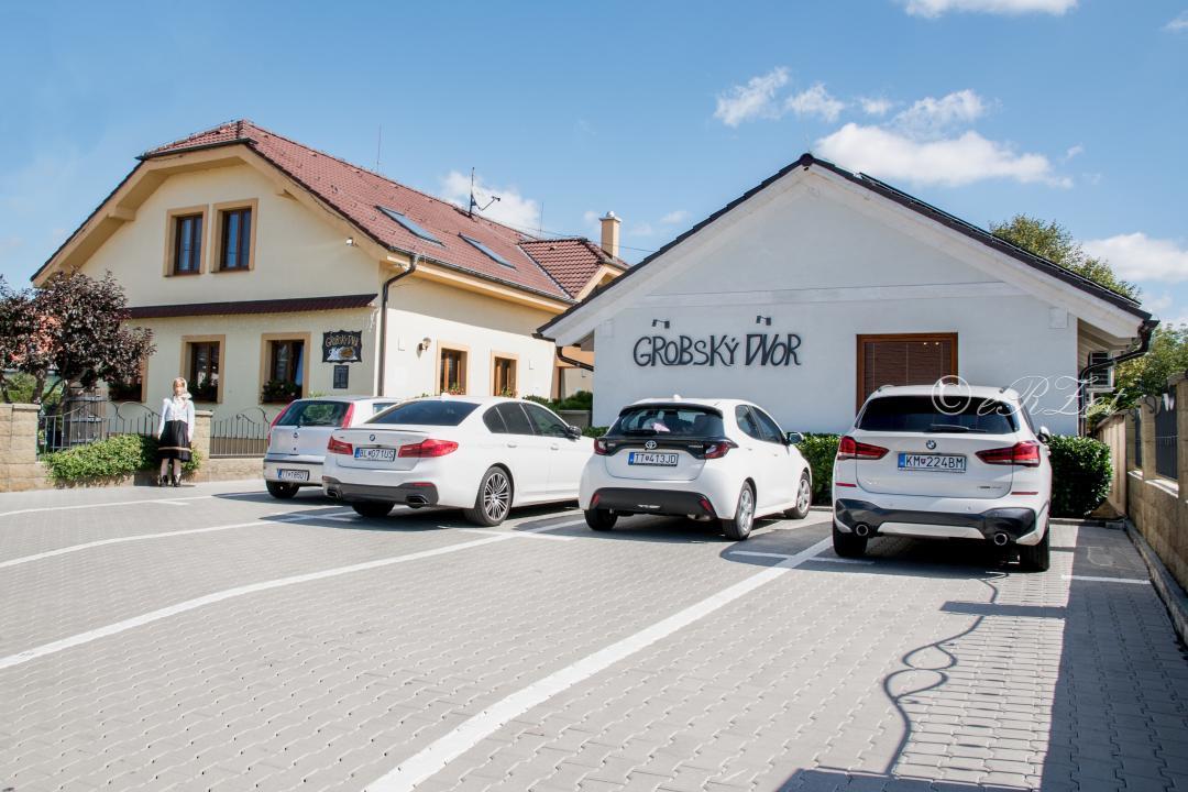 Aj po celej obci bolo cítiť slávnostnú husacinohodovú atmosféru. Jednotlivé skupiny sa presúvali do reštaurácii, aby si prišli pochutiť na objednanej husičke alebo kačičke. Prešiel som sa aj po Slovenskom Grobe, po zapojených reštauráciách, ale nielen po nich: Husacina & Penzión Karolína, Grobský dvor, Pivnica u Zlatej husi, Husacina u Jakuba, Husacina Plus penzión. Bohužiaľ musím konštatovať, že pre jedného sa v nich hus alebo kačica nenašla, keď si nechcel dať pol husi alebo kačice. V Husacine u Zápražných vinárstvo Pereg ponúkalo ochutnávku vín.